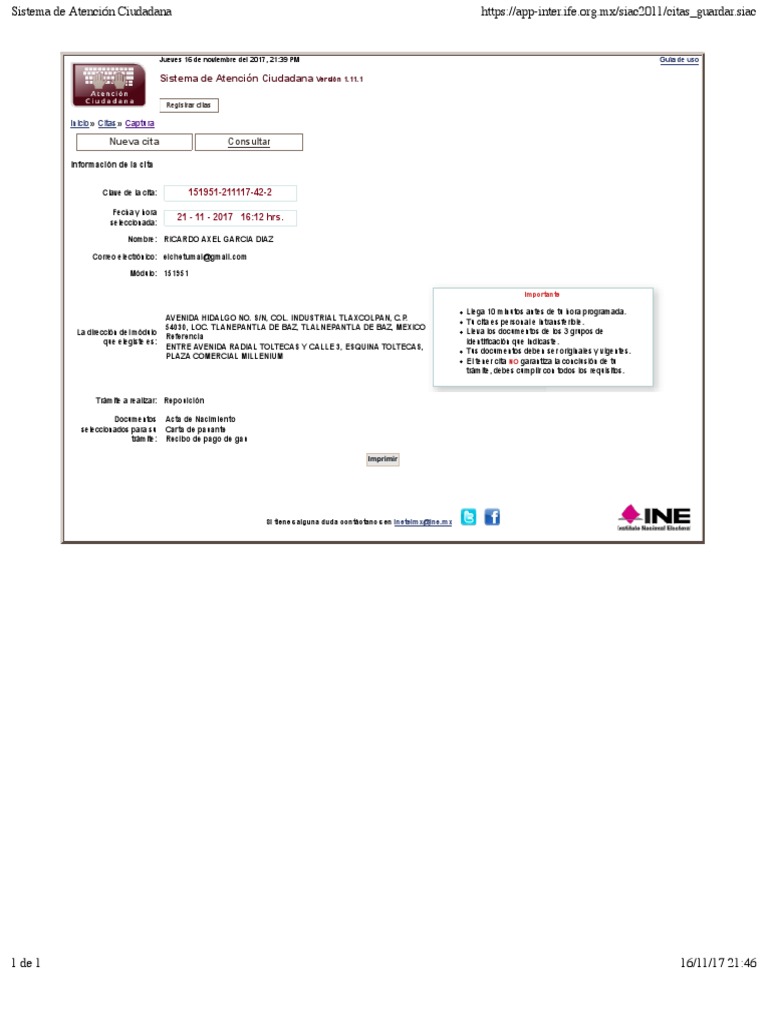 Atendera Ine Solo Por Citas El Sol De Cuernavaca from www.elsoldecuernavaca.com.mx 7 de abril de 2014. Para cualquier duda sobre tu trámite que esta página no pueda subsanar te recomendamos comunicarte. Portal web para que el ciudadano solicite por internet cita en las oficinas unicas de de este modo, no será necesario que soliciten una cita previa al efecto, de manera inmediata. El ine anunció que reabre hoy los módulos de atención, con el fin de que los ciudadanos recojan posteriormente, deberán programar una cita a través del portal del ine o en el teléfono 800 433 2000. Esta web no pertenece a ninguna institución oficial, con el único. (purge) if you feel the list needs an update, please help by doing so. Si necesitas una cita en el ine, nosotros te ayudamos a obtener tu cita muy rapido y por internet, no esperes mas obten tu cita. Imprescindible para atención en oficina de prestaciones.